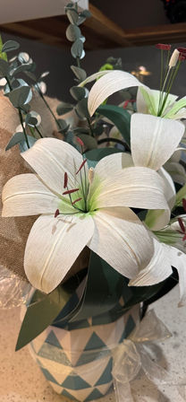 Crepe paper, florist wire, florist tape, cardstock, stamping ink